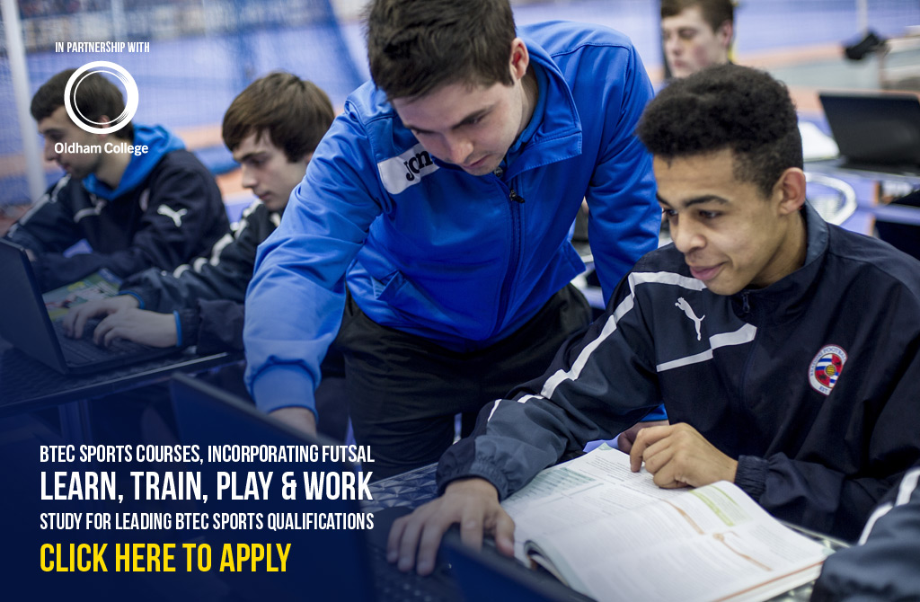 This arena represents our hub in the North West of England and we are delighted to have developed this in partnership with Oldham College. The arena therefore provides a sports education facility for the college along with all of the features that you would expect in a standard Futsal arena. The facility includes 3 youth Futsal pitches and a FIFA regulation Futsal pitch for adult games. All of the pitches can be used for multi-spots including basketball, netball, handball, roller derby and many other sports. We have jointly created a cool urban environment where you will find music and video while you play, changing facilities, spectator areas, interactive zones, modern vending facilities and ample car parking along with other features. We provide a wide range of activities from themed leagues and tournaments through to kids clubs and community education courses. Because our arenas provide indoor facilities, then we can guarantee all year round availability. The arena is conveniently located in the centre of Oldham and is served by excellent public transport plus all major roads into Oldham. Entry into the arena is FREE.